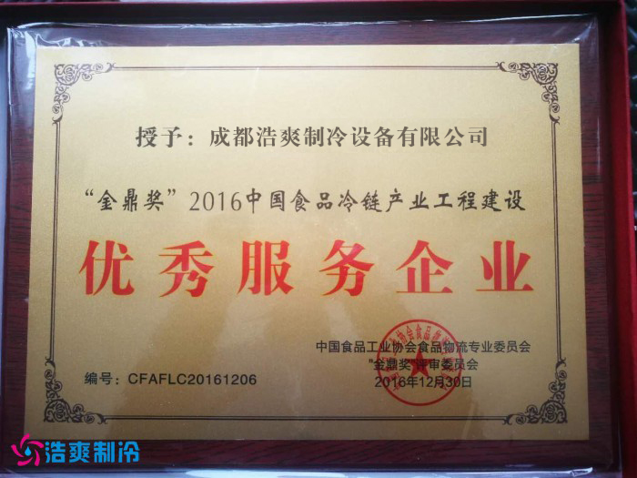 (2016中國(guó)食品冷鏈產(chǎn)業(yè)工程建設(shè)優(yōu)秀企業(yè))