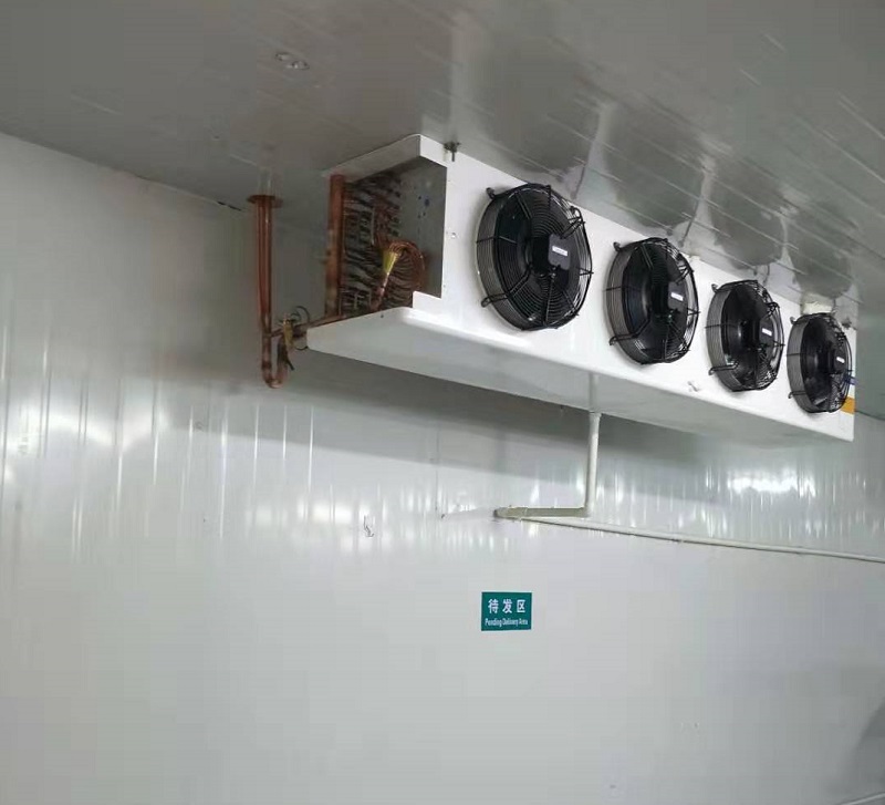 冷庫內配備的是3臺上海兆雪系列高效強風型冷風機,該風機運行穩定噪音小,送風距離遠,使得庫內降溫速度快,極大增強了化霜效果,增加快速對流循環,從而達到每個角落的溫度均勻性。