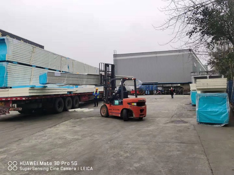 (3)庫(kù)板方面,-32℃速凍庫(kù)采用的是200mm聚氨酯雙面彩鋼板保溫庫(kù)板;-20℃冷凍庫(kù)采用的是150mm聚氨酯雙面彩鋼板保溫庫(kù)板,0~4℃保鮮庫(kù)和0~4℃排酸庫(kù)則采用的是100mm聚氨酯雙面彩鋼板保溫庫(kù)板,該保溫板具有防潮、防水、防火等特點(diǎn),阻燃標(biāo)準(zhǔn)為B1級(jí),從而在確保實(shí)現(xiàn)冷庫(kù)穩(wěn)定低溫環(huán)境的同時(shí)極大地降低了后期運(yùn)行成本。